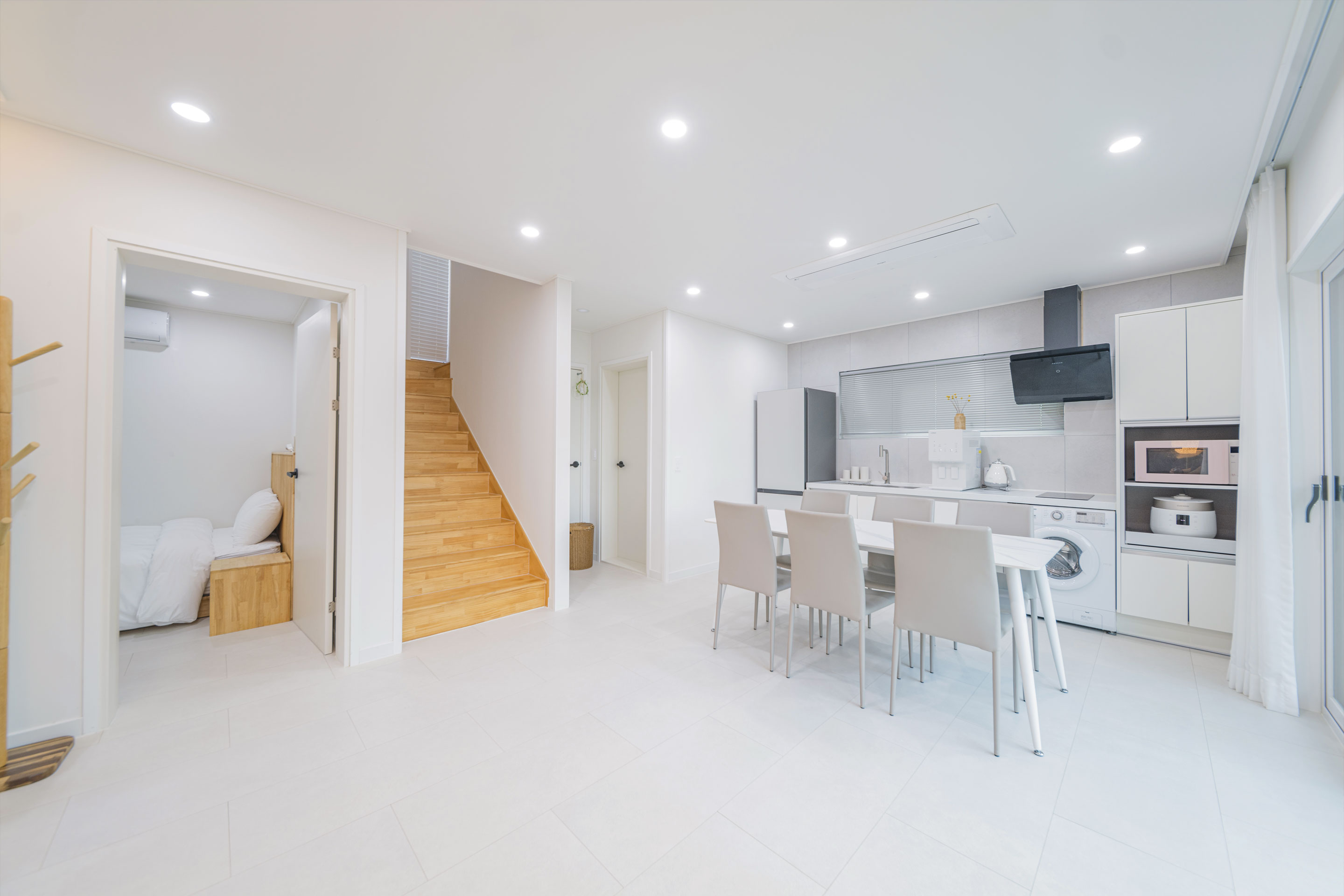 냉장고, 세탁기, 식탁, 전자렌지, 압력밥솥, 와인잔, 와인오프너, 조리도구,식기류, 헤어드라이어, 인덕션, 코웨이 정수기, 샴푸, 컨디셔너, 바디워시, 치약